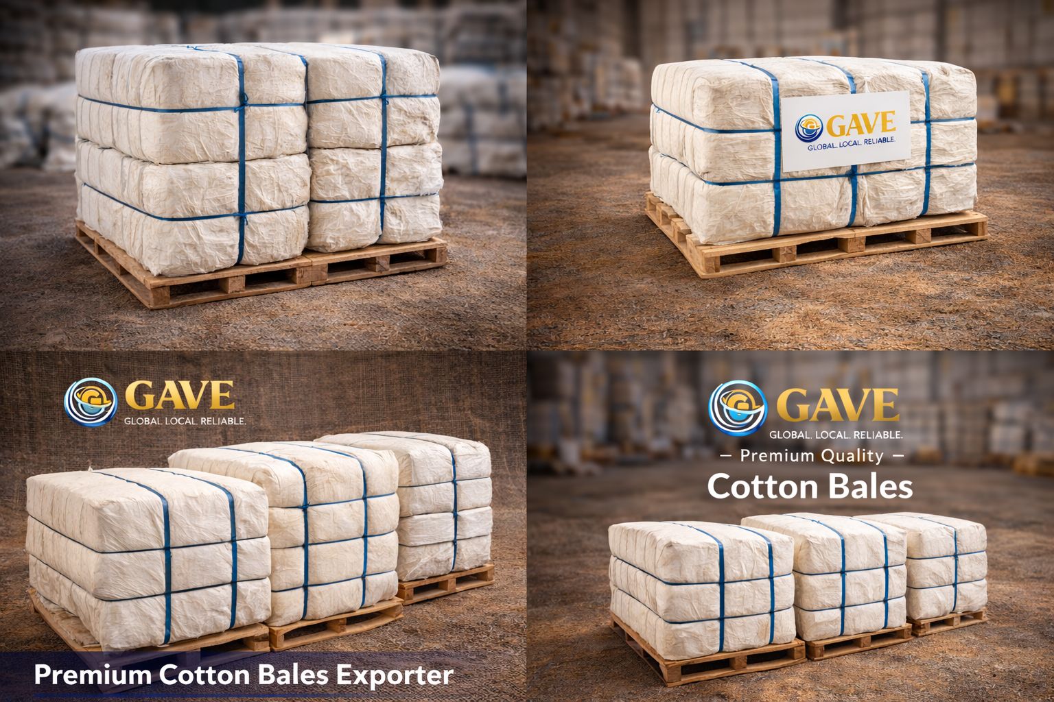 Cotton Bales are high-density compressed cotton fibers, widely used in textile manufacturing for spinning yarn and fabric production. Known for their excellent fiber strength, uniformity, and low moisture content, these bales ensure efficient processing and superior end-product quality. Gave Exports offers premium-grade cotton bales, carefully processed and packed to meet international export standards. We ensure consistent quality, secure packaging, and reliable bulk supply, making our product ideal for global textile mills and industrial buyers. ✅ Key Features: High Purity & Whiteness Uniform Fiber Length Low Moisture Content Free from Contaminants and Foreign Matter Suitable for Export and Domestic Use